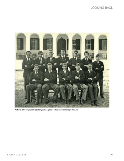 Prefects, 1954. If you can recall any names, please let us know at news@saltus.bm