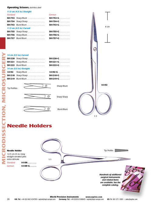 11.5 cm (4.5 in.) Straight Standard 501753 Sharp/Blunt . . . . . . . . . . . . . . . . 501754 Sharp/Sharp . . . . . . . . . . . . . . . . 501743 Blunt/Blunt . . . . . . . . . . . . . . . . . 11.5 cm (4.5 in.) Curved 501755 Sharp/Sharp . . . . . . . . . . . . . . . . 501756 Sharp/Blunt . . . . . . . . . . . . . . . . . 501757 Blunt/Blunt . . . . . . . . . . . . . . . . . 501755-G . . . . . . . . . . 501756-G . . . . . . . . . . 501757-G . . . . . . . . . . German 501753-G . . . . . . . . . . 501754-G . . . . . . . . . . 501743-G . . . . . . . . . . 4 cm