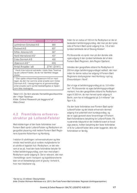 Med etableringen af den faste forbindelse over Femern Bælt opnår Lolland-Falster og Rødbyhavn en geografisk placering midt mellem Femern Bælt Regionens bycentre København og Hamborg. I relation til udviklingen i erhvervsstrukturen og ikke mindst med henblik på at vurdere mulighederne for at udvikle et logistisk hub i Rødbyhavn, er det relevant at se på, hvad den faste forbindelse betyder for hvilket befolkningsgrundlag, som man med afsæt i Rødbyhavn opnår adgang til. Det er relevant, idet man i fremstillings- samt i transport- og logistikbrancherne taler om et tilstrækkeligt point of gravity i forhold til, hvor man lokaliserer sig.