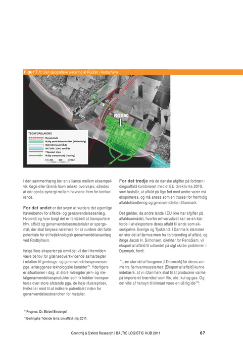 I den sammenhæng bør en alliance mellem eksempelvis Køge eller Grenå havn måske overvejes, således at der opnås synergi mellem havnene frem for konkurrence. For det andet er det svært at vurdere det egentlige havnebehov for affalds- og genanvendelsesanlæg. Hvorvidt og hvor langt det er rentabelt at transportere hhv. affald og genanvendelsesmaterialer er spørgsmål, der skal belyses nærmere for at vurdere det fulde potentiale for et højteknologisk genanvendelsesanlæg ved Rødbyhavn. Ifølge flere eksperter på området vil der i fremtiden være behov for grænseoverskridende samarbejder i relation til genbrugs- og genanvendelsesprocesser pga. anlæggenes teknologiske karakter75. Yderligere er situationen i dag, at store mængder jern- og metalgenanvendelsesprodukter som fx kobber transporteres over store afstande pga. de høje råvarepriser, hvilket er med til at indikere potentialet inden for genanvendelsesbranchen for metaller.