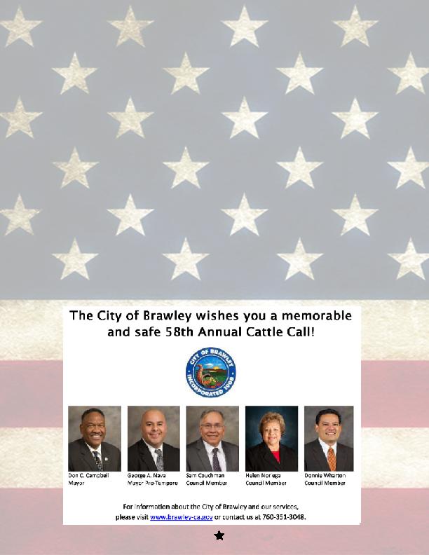 Welcome to our great City of Brawley as we celebrate Brawley Cattle Call 2014. I have been