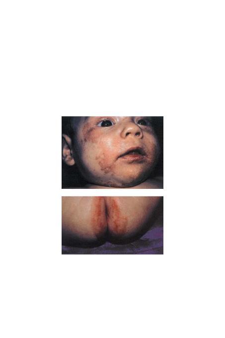 eritemli, skuaml> papül ve plaklar (bkz. üstteki flekil); perianal bölgede s>z>nt>l> eritematöz,