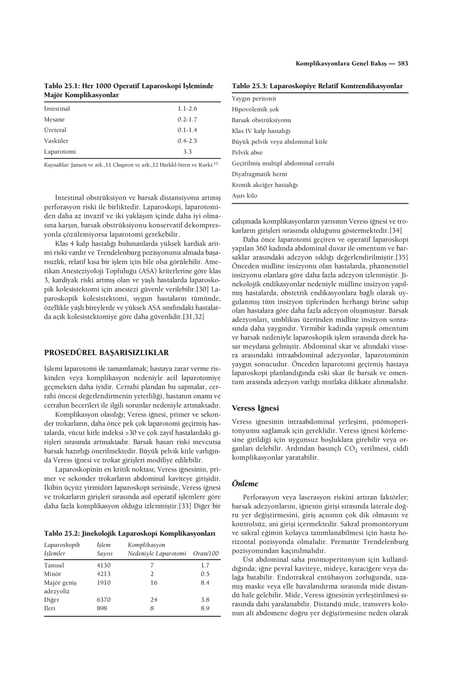 Tablo 25.1: Her 1000 Operatif Laparoskopi ‹flleminde Majör Komplikasyonlar