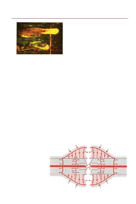 Walter Bandi, Robert Schneider, ve Hans Willenegger'dir. kir birliine varmilar ve bunlara bali kalmilardir. Her bir kiriin yakin takibi sayesinde sonuçlari belgeleyerek hatalar ve komplikasyonlardan ders çikartmilardir. sviçreli AO'ya paralel olarak, Gerhard Kuntscher (1900-1972) Almanya'da intramedüler çivileme tekniini gelitirmi ve bu teknik daha sonra özellikle femur ve tibia kemiindeki cisim kiriklarinin tedavisini kökten deitirmitir. kirik bölgesinde kismi harekete izin veren ve böylece kallus oluumu ile iyiletiren bir tespit yöntemidir. Bir taraftan rijit fiksasyon dier tarafta daha esnek bir internal tespit, aslinda birbirlerini tamamlayici olmasi ve her birinin kendi avantaj, dezavantaj ve spesifik endikasyonlarina sahip olmasina ra- men siklikla rekabetçi teknikler olarak deerlendirilmektedir. yaralanma öncesi faaliyetlerine dönmesini salamak ve ayni zamanda komplikasyon risk ve insidansini en aza indirmek olmalidir. mplantlarin kullanilma amaci geçici destek sala- mak, kiriin iyilemesi boyunca dizilimi salamak ve fonksi- yonel bir rehabilitasyona izin vermektir. BYOMEKANN ETKS davisindeki etkisi ele alinacaktir. Herhangi bir cerrahi mü- dahele kirik iyilemesi için gerekli biyolojik ve biyomekanik çevreyi deitirmektedir ve kirik tedavisi yapan her cerrah bu deiimleri bilmelidir. Mekanik ve biyolojik yönden kiri- in kaynamasi için belirli bir derecede stabil hale getirilmesi, beslenmesinin optimal düzeyde korunmasi ve biyolojik veya hormonel uyarilarin olmasi gerekir. Bu üç faktör de önemli olmakla birlikte, mekanik özellik ölçümü en kolay olanidir. Mutlak ve rölatif stabilite olmak üzere iki tip stabilite tanim- lanabilir. Mutlak stabilite, fizyolojik yüklenme esnasinda kirik parçalari arasinda herhangi bir mikro-harekete izin vermeyen rijit fiksasyon olarak tanimlanir. Bu, en iyi interfragmenter kompresyon vidasi ile salanir ve etkisi ön yüklenme ve sür- tünmeye dayanir. Kemiin internal veya eksternal tespiti ile daha elastik fiksasyon salayan rölatif stabilite, fonksiyonel yüklenme ile kirik bölgesinde sinirli miktarda harekete izin verir. Stabilite derecesi kiriin iyileme türünü belirler. Kayna- ma, primer yani dorudan kemik remodelizasyonu ile (ekil 7-1) veya kalus formasyonuyla ikincil yani dolayli kaynama yoluyla meydana gelir. Kallusun olutuu dolayli kirik iyile- mesi, primer yani direk olarak kemiin remodelizasyonuyla oluan kirik iyilemesine göre (ekil 7-2) çok daha geni bir mekanik ortamda gerçeklemektedir. Herhangi bir hareket yoksa kalus olumayacaktir; ancak gereinden fazla hareket varsa da kemiin iyilemesi ayni ekilde gecikecektir. orijinal formuna belirli bir kuvvetin uygulanmasiyla oluan deformasyondur (örnein, bir boluk içerisindeki granülas- yon dokusu) ve bundan dolayi boyutu yoktur. Bir dokunun kirilmadan önce tolere edebilecei deformasyon miktari geni ölçüde deiiklik gösterir. Normal salam bir kemik yaklaik %2 gibi düük gerilim toleransina sahip iken, granülasyon do- kusu %100 gibi yüksek bir gerilim toleransina sahiptir. zarar verecektir (ekil 7-3). Granülasyon dokusuyla doldurul- mu daha geni bir açiklia uygulanan ayni kuvvet sadece bu dokuyu zedeleyecek ve hiçbir yirtia neden olmayacaktir. Basit marlardan kirik boluuna doru ilerleyen damarlarin ematik çizimi. Çevreden kirik boluuna doru büyü- yen damarin ematik çizimi. |