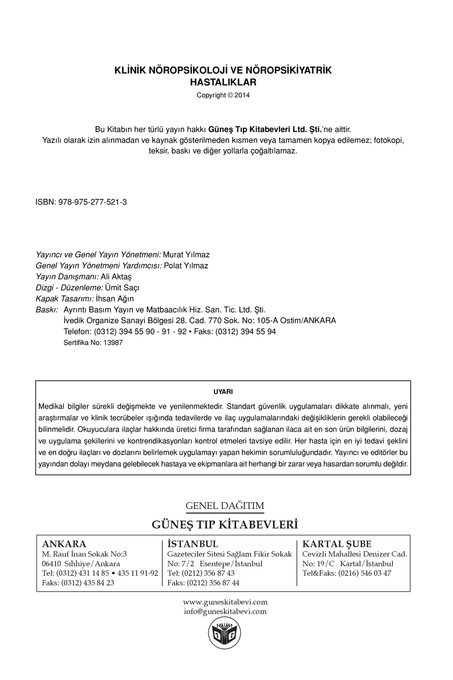 Bu Kitabın her türlü yayın hakkı Güneş Tıp Kitabevleri Ltd. Şti.’ne aittir. Yazılı olarak izin alınmadan ve kaynak gösterilmeden kısmen veya tamamen kopya edilemez; fotokopi, teksir, baskı ve diğer yollarla çoğaltılamaz.