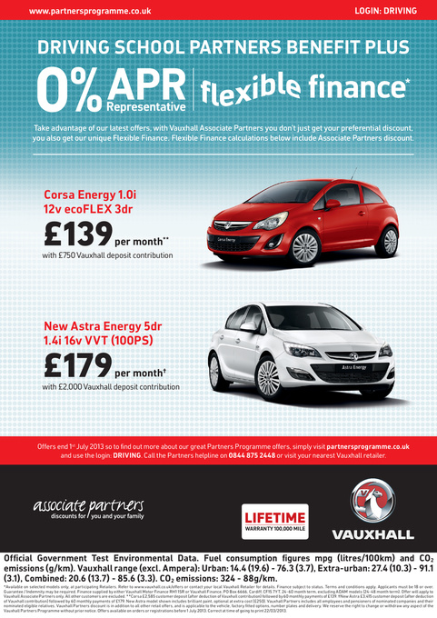 Offers end 1st July 2013 so to find out more about our great Partners Programme offers, simply visit partnersprogramme.co.uk and use the login: DRIVING. Call the Partners helpline on 0844 875 2448 or visit your nearest Vauxhall retailer.