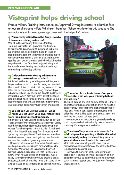 From a Military Training Instructor, to an Approved Driving Instructor, to a familar face on our small screens – Pete Wilkinson, from Yes! School of Motoring Ltd, speaks to The Instructor about his ever-growing career with the help of VistaPrint