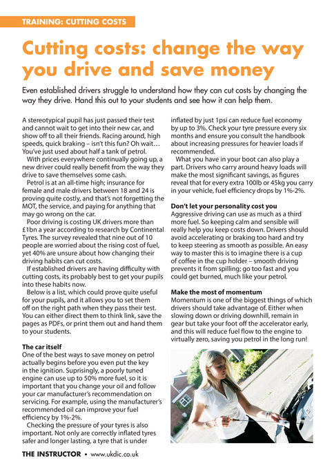 Even established drivers struggle to understand how they can cut costs by changing the way they drive. Hand this out to your students and see how it can help them.