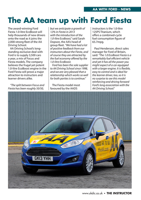 The award-winning Ford Fiesta 1.0-litre EcoBoost will help thousands of new drivers onto the road as it joins the 2,000-strong fleet of the AA Driving School. AA Driving School’s longstanding exclusive deal with Ford is to supply 3,500 cars a year, a mix of Focus and Fiesta models. The company believes the frugal yet potent 1.0-litre EcoBoost engine in the Ford Fiesta will prove a major attraction to instructors and learner drivers alike. “The split between Focus and Fiesta has been roughly 50/50, but we anticipate a growth of 12% in Fiesta in 2013 with the introduction of the 1.0-litre EcoBoost,” said Sarah Dopson, the AA’s head of group fleet. “We have had a lot of positive feedback from our instructors about the Fiesta, and of course they are attracted by the fuel economy offered by the 1.0-litre EcoBoost. Ford has been the sole supplier to AA Driving School since 1998, and we are very pleased that a relationship which works so well for both parties is to continue.” The Fiesta model most favoured by the AADS instructors is the 1.0-litre 125PS Titanium, which offers a combined-cycle fuel consumption figure of 65.7mpg. Paul Henderson, direct sales manager for Ford of Britain, said: “The 1.0 EcoBoost Fiesta is a remarkably fuel efficient vehicle and yet it has all the power you might expect of a car equipped with a larger engine. It is flexible, easy to control and is ideal for the learner driver, too, so it is no surprise to see this model reinforcing and driving forward Ford’s long association with the AA Driving School.”