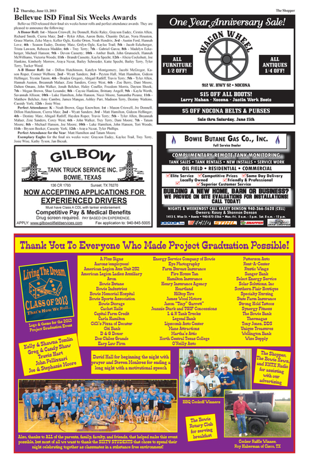 The Shoppe r, The Bowie N ews, and KNTX R adio for assistin g with our advertising