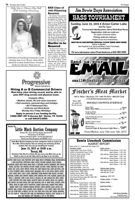 Bowie, TX • Col. J.D. Freudiger, Auctioneer TX Auction LI. #12827 (Home) 940-872-2052 • (Cell) 903-256-5011 Find us at: The Shopper and KNTX 1410