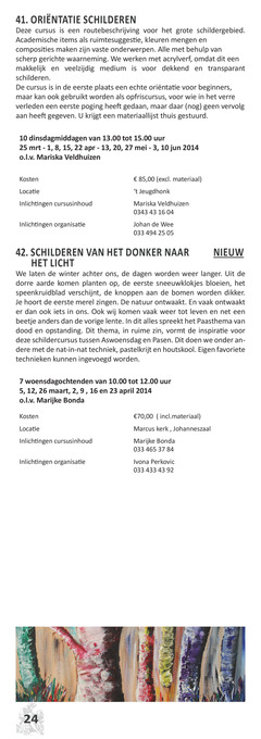 Kosten Locatie Inlichtingen cursusinhoud Inlichtingen organisatie €70,00 ( incl.materiaal) Marcus kerk , Johanneszaal Marijke Bonda 033 465 37 84 Ivona Perkovic 033 433 43 92