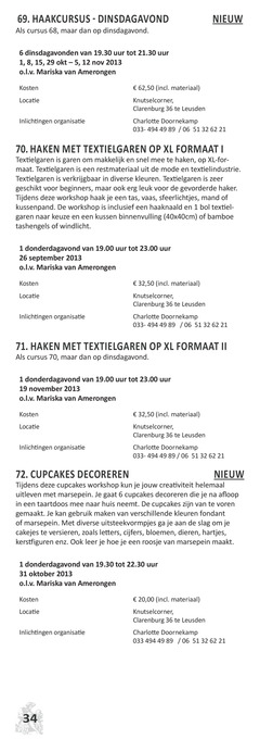 Kosten Locatie Inlichtingen organisatie € 32,50 (incl. materiaal) Knutselcorner, Clarenburg 36 te Leusden Charlotte Doornekamp 033- 494 49 89 / 06 51 32 62 21